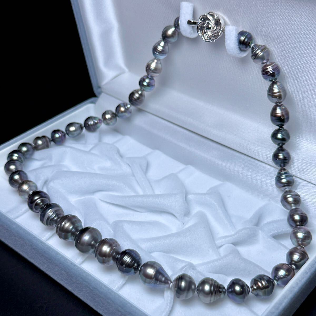 - 照り◎ 黒蝶真珠 ネックレス 8.06〜12.45㎜ 47㎝ 57.6g 南洋パール クロチョウ 本真珠 SILVER刻印 pearl jewelry necklace