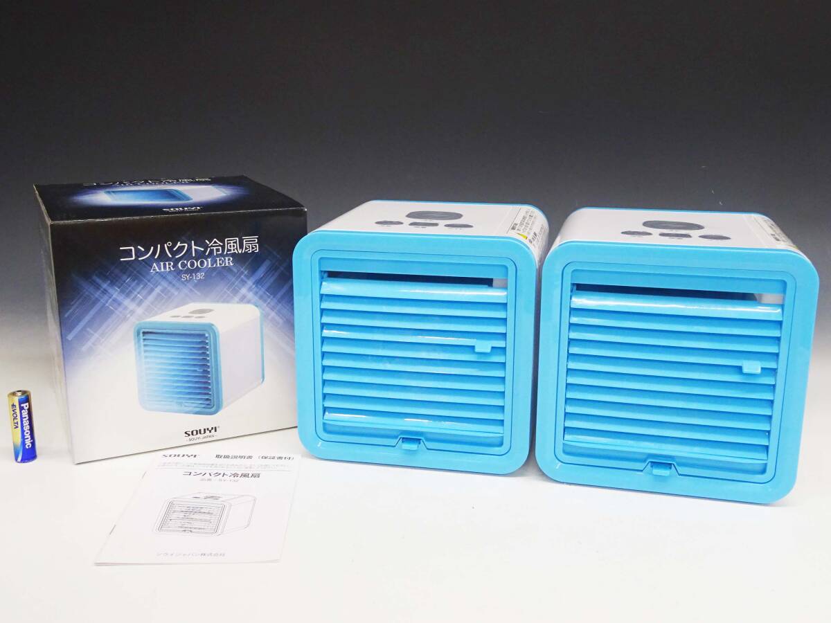 > 夏 ◆(EG) SOUYI コンパクト冷風扇 SY-132 2点セット 説明書 1点のみ箱付き 2020年製 小型 卓上 冷風機 家電 ※USBケーブル欠品 動作確認済