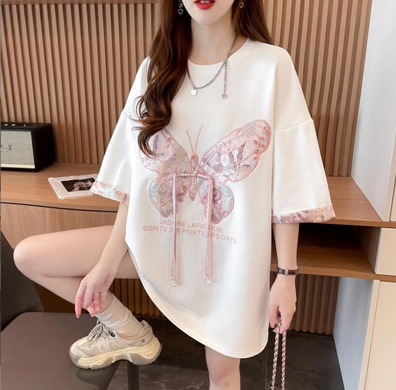 - 人気 新品 半袖tシャツ レディース トップス 半袖 tシャツ 中華風 カットソー 夏服 薄手 プリント 丸首 英文字 カジュアル ゆるカットソー