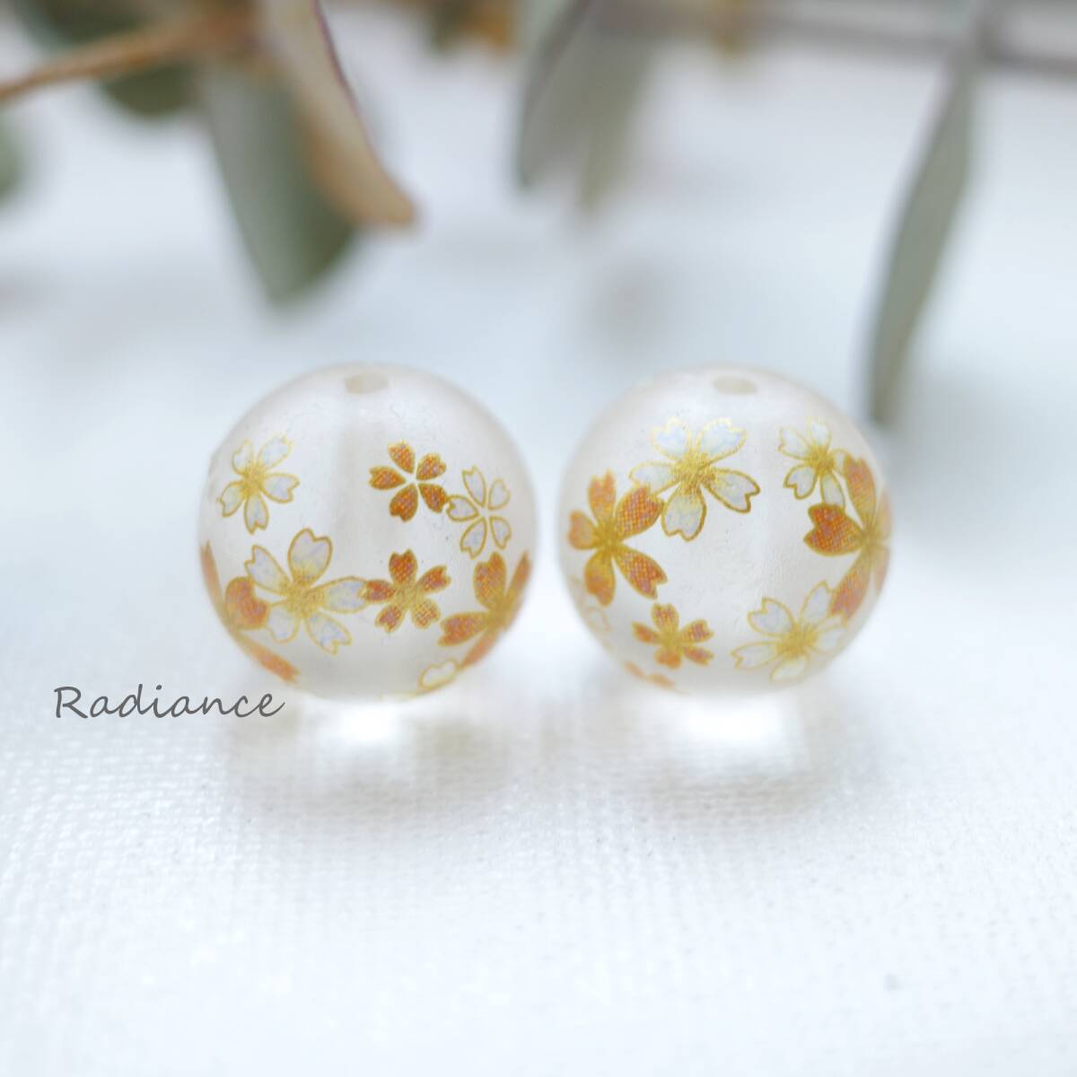 - 1.6㎝☆転写玉☆2個セット☆サクラ☆和風アクリルビーズ☆丸ビーズ☆ハンドメイド素材☆かすり透明