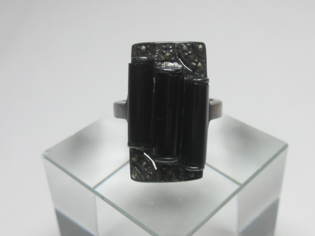 > ★アンティークリング「オニキス&マーカサイト」★指輪・スターリングシルバー925製★骨董・ビンテージ・昭和レトロ・コレクション★