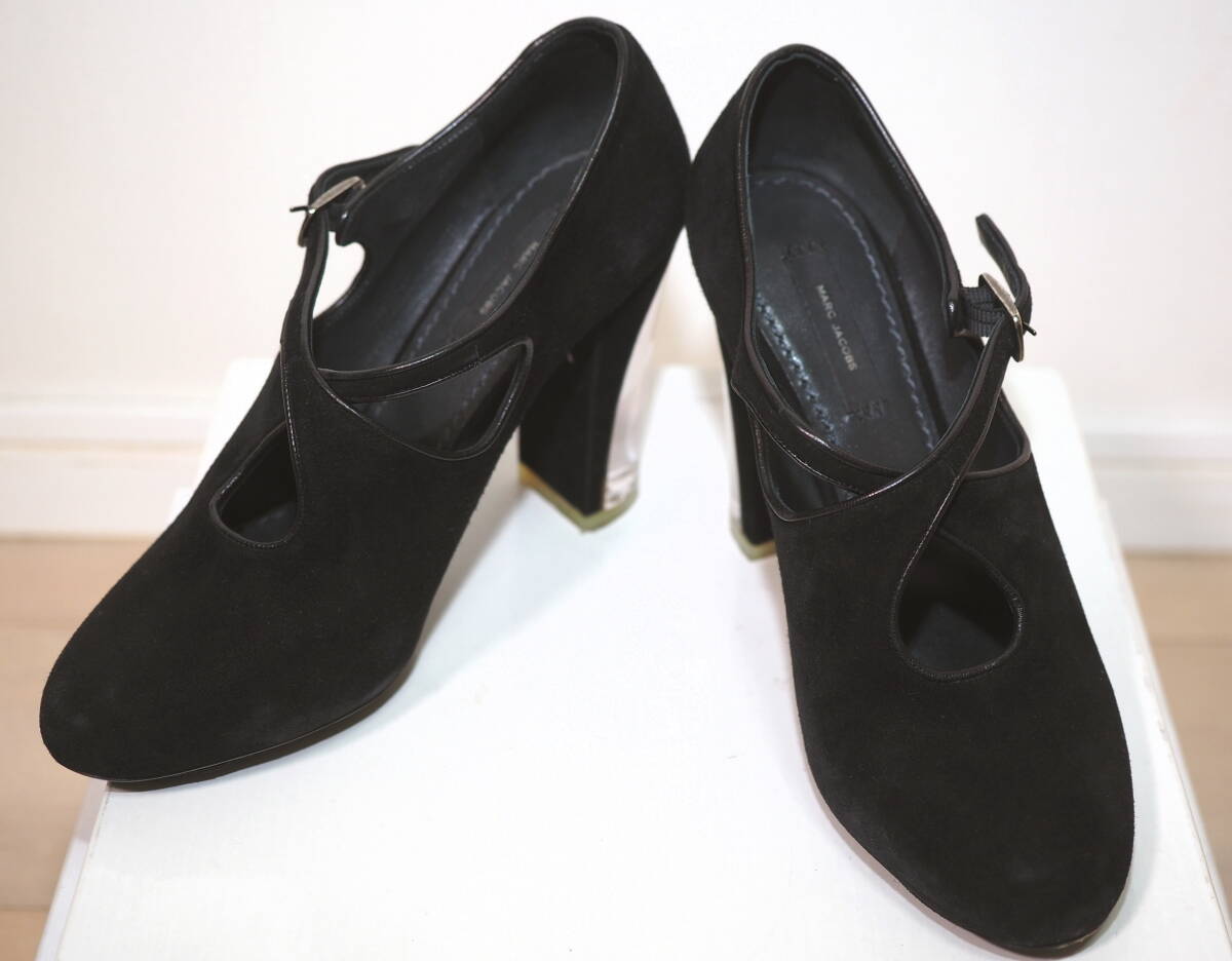 - MARC JACOBS マークジェイコブス クリアーヒールスエードブーティ37黒 Italy製 ファーストライン