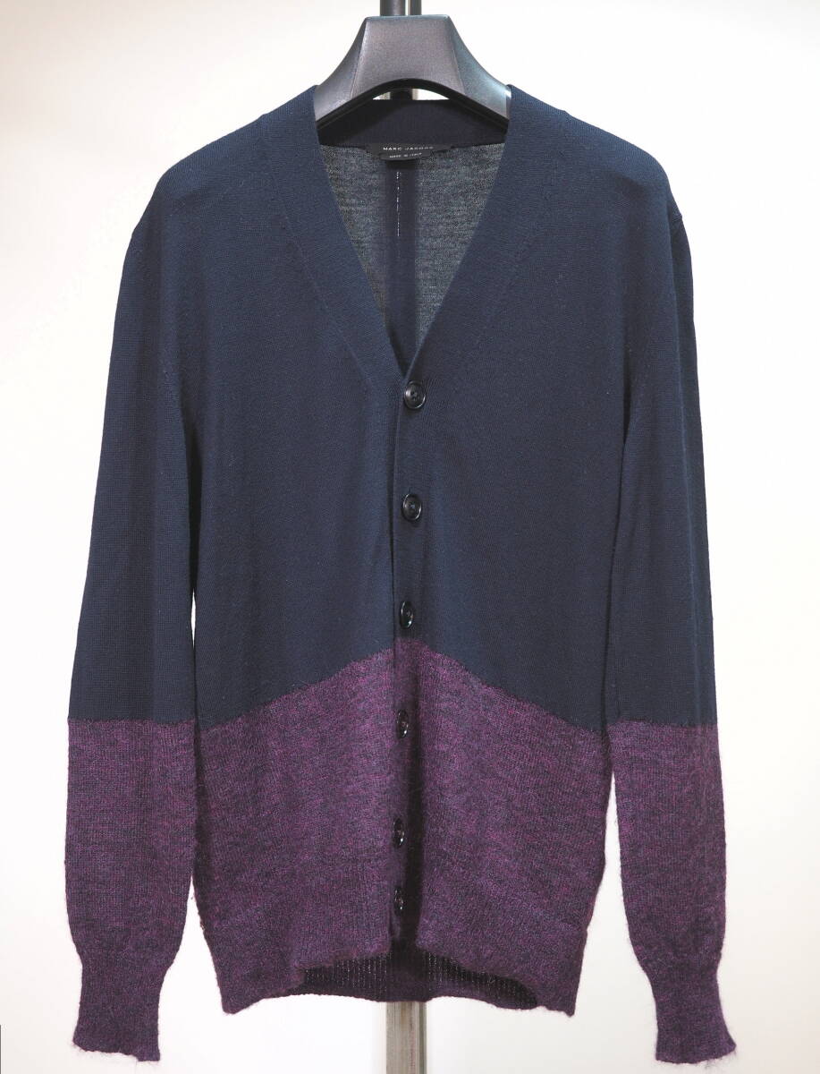 - MARC JACOBS マークジェイコブス 13AWモヘア混バイカラーカーディガンS紺×紫 Italy製