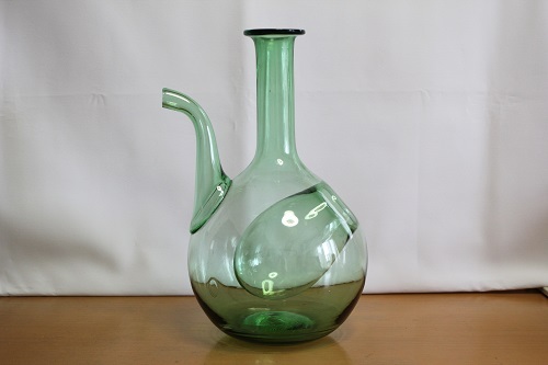 - ヴィンテージワインクーラー 氷ポケット付きカラフエ デカンタ 手吹きグリーンガラス