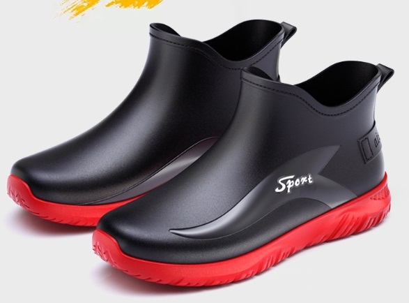 > 新品 レインシューズ メンズ ショット丈 レインブーツ 梅雨 防水 防滑 アウトドア 作業靴 黒赤/27cm