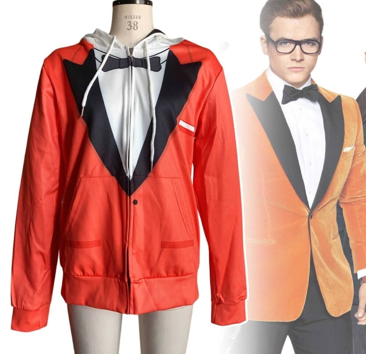 > ★送料無料★「キングスマン タロン・エガートン 紳士のスーツ/ベルベットジャケット風 パーカー フード付き Mサイズ」tface-g T06/28