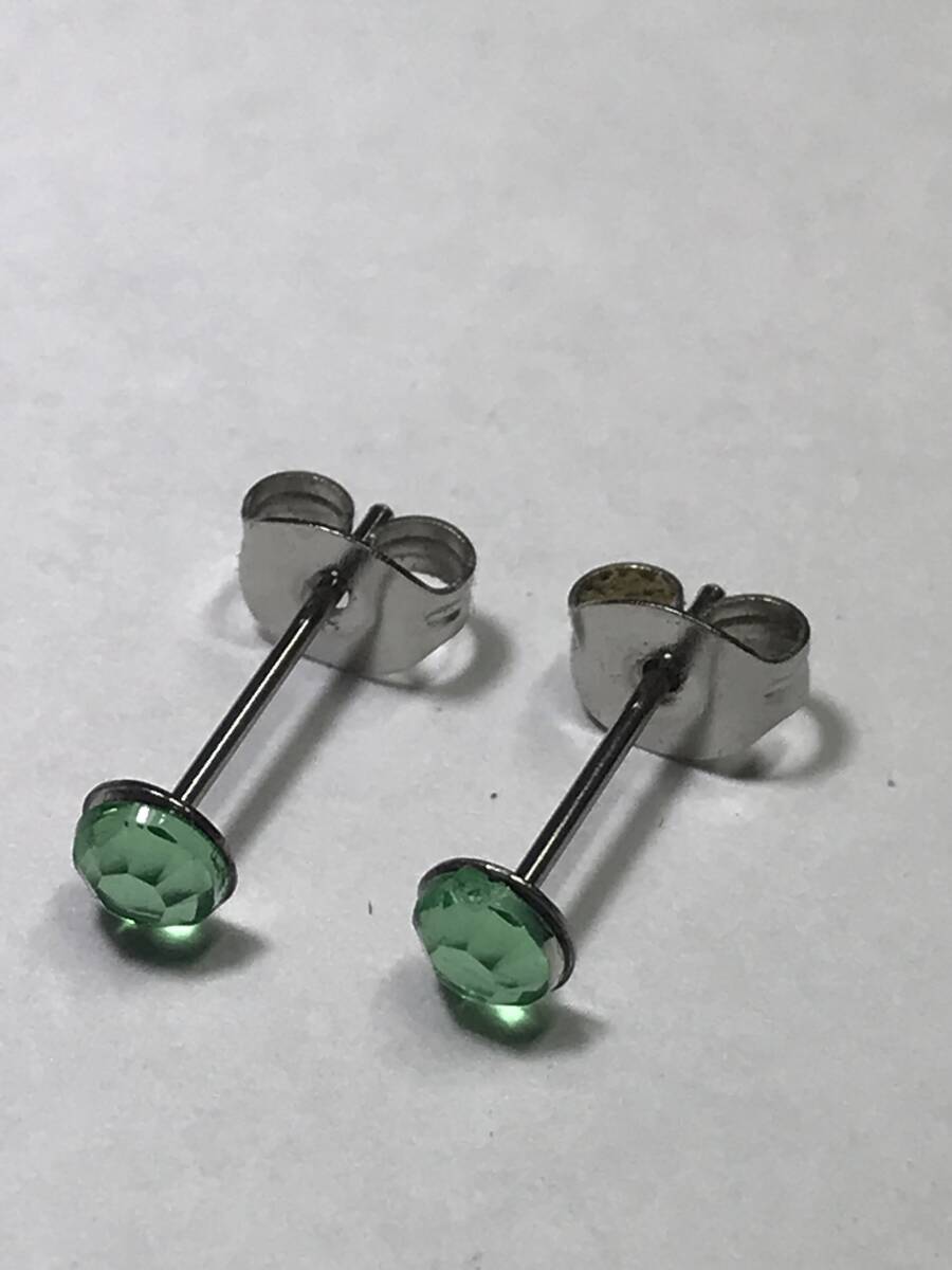 - 2個1セット 幅4mm ラインストーン スタッドピアス ライトグリーン 両耳用 ステンレス アクリル製 シンプル つけっぱなしOK 安い
