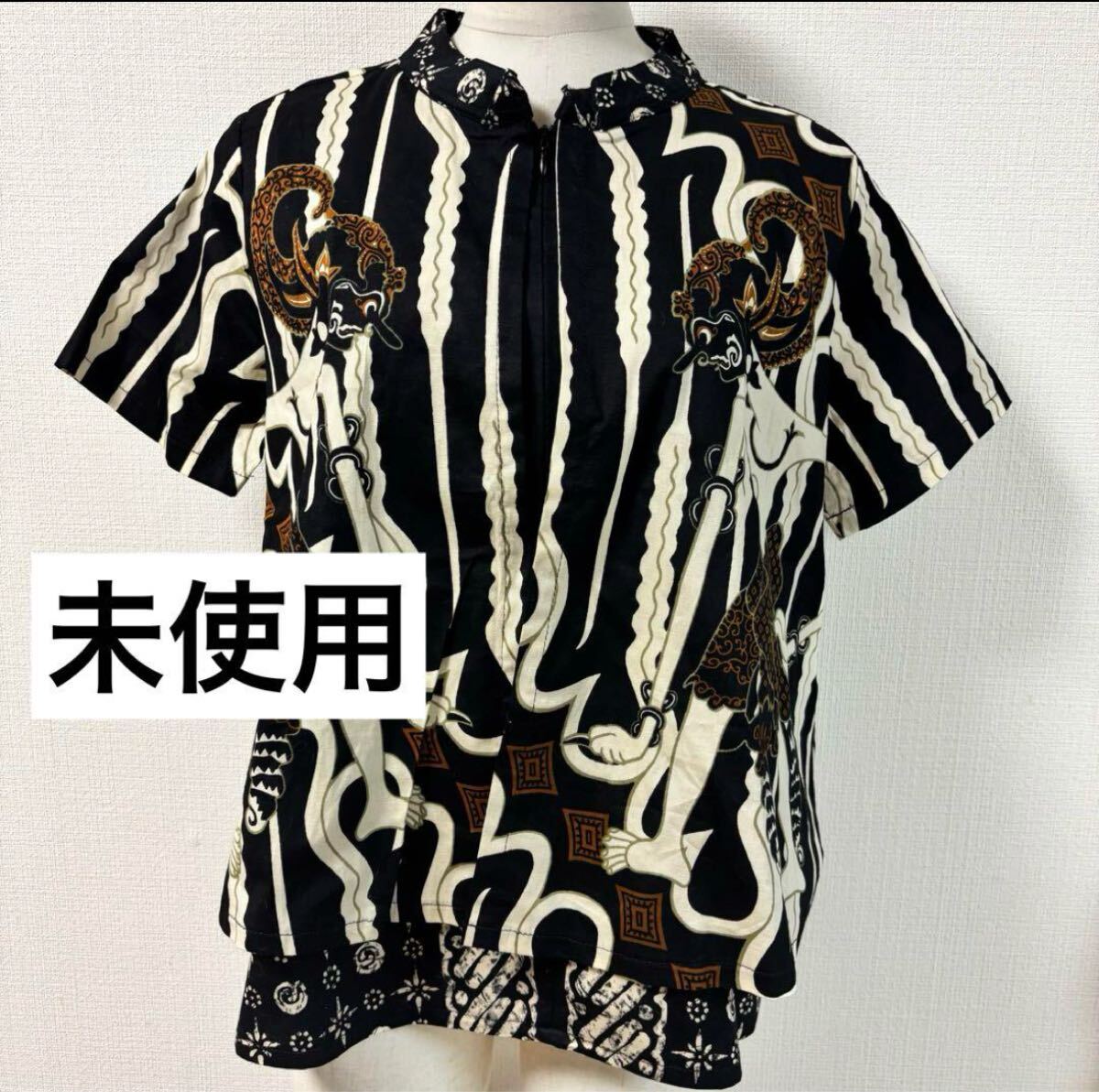 - 未使用◇バティック◇2枚仕立てシャツ◇ワヤンクリ◇インドネシア◇ハンカチ付き