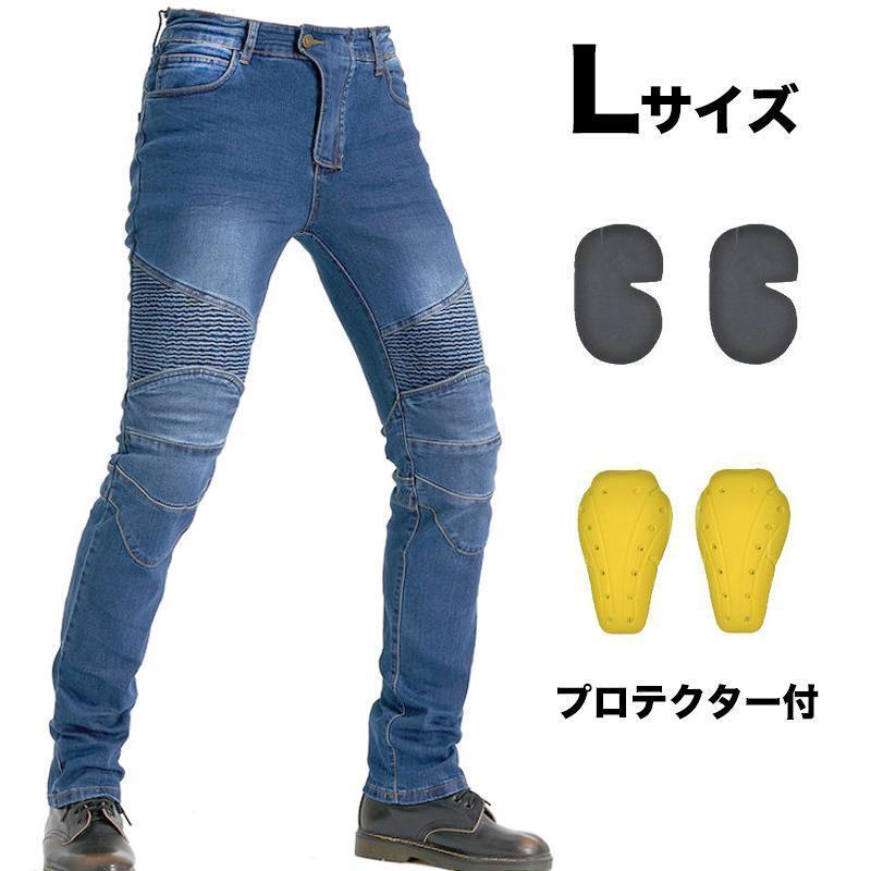 - JES-1N サイズL デニム バイク パンツ ライディング ジーンズ ツーリング オールシーズン 腰/膝用 プロテクター装備付 ストレッチ ブルー