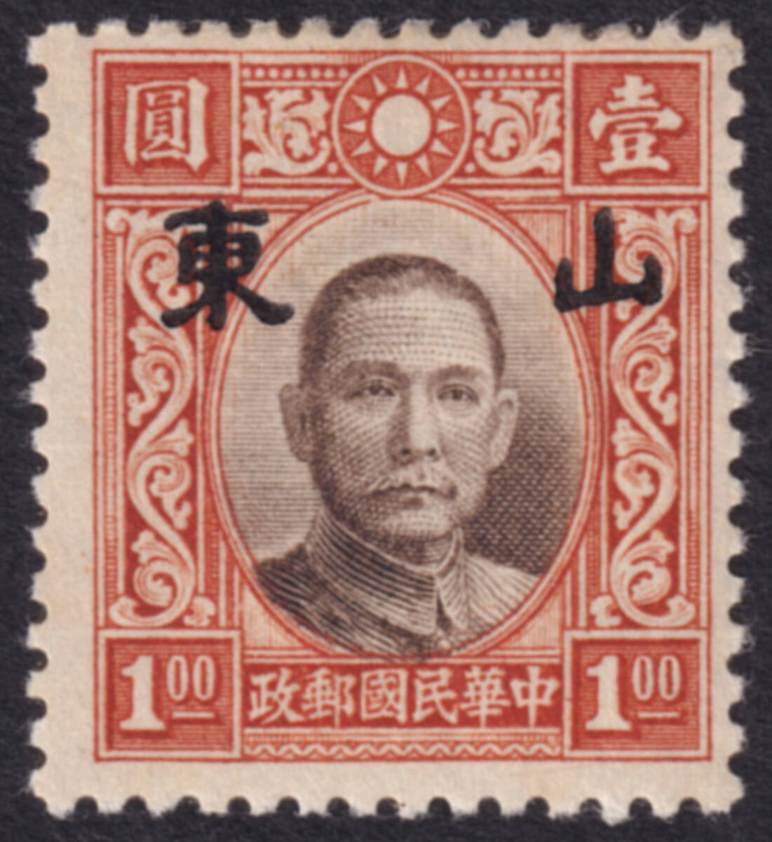 - 中国占領地切手 山東 省名加刷 小字 中華版孫文票 1円 未使用 JPS:3C12 z13176