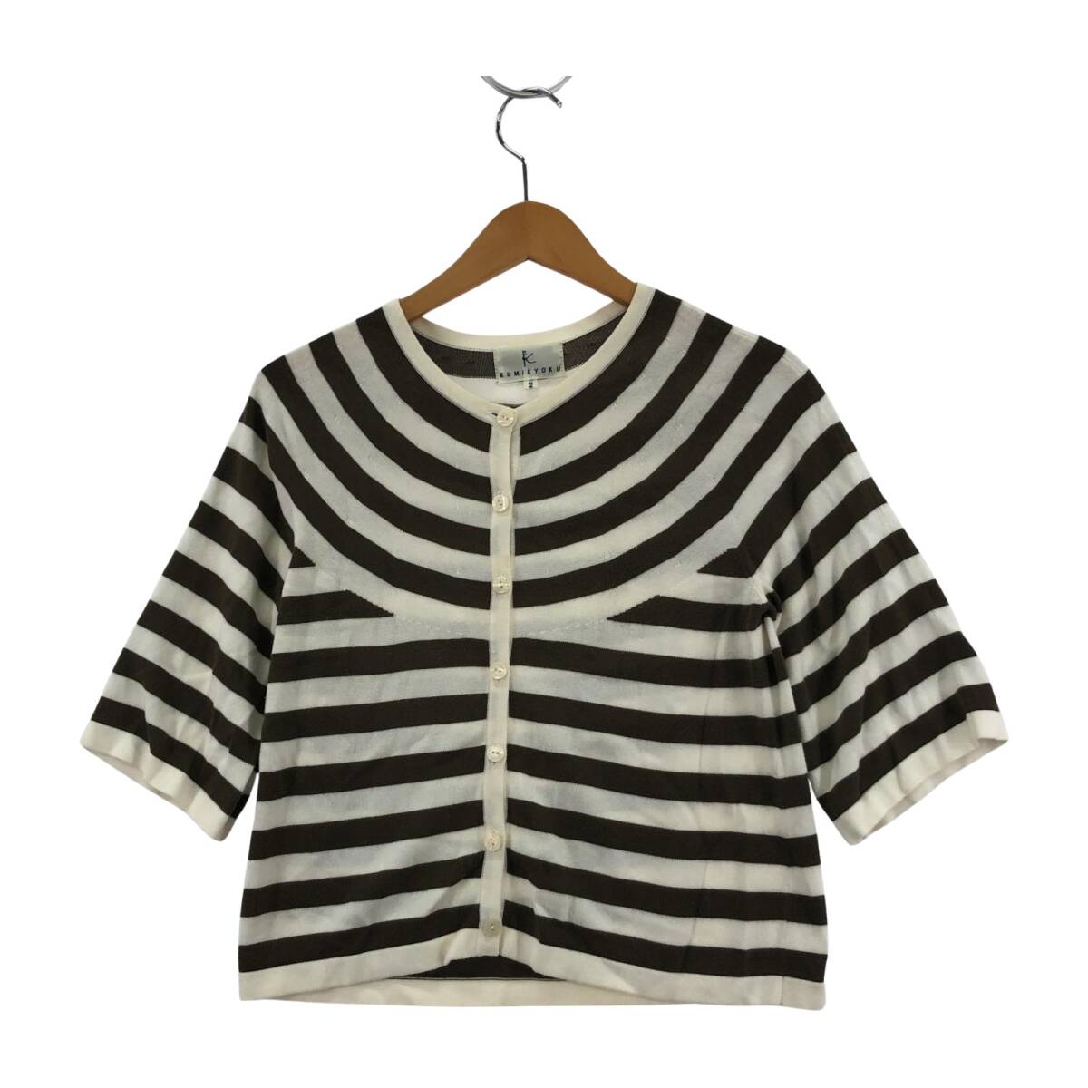 - kumikyoku クミキョク ボーダー カーディガン size2/カーキ×ホワイト