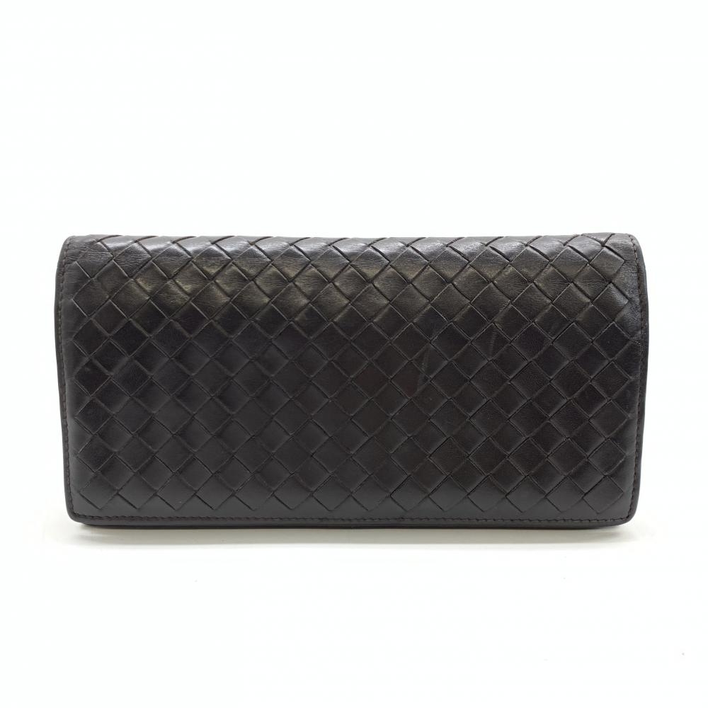 > BOTTEGA VENETA ボッテガヴェネタ 二つ折り長財布 イントレチャート レザー ダークブラウン メンズ 管理RT41146