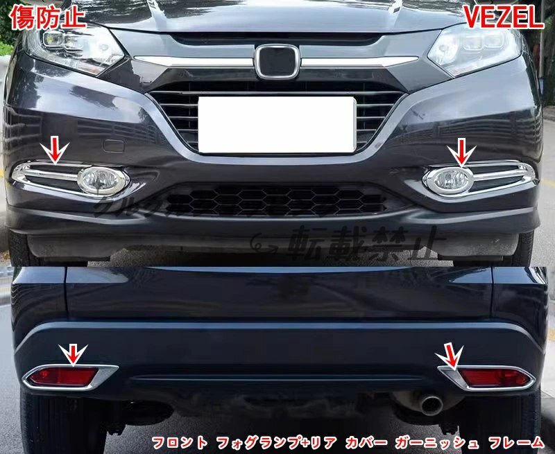 - ホンダ ヴェゼル専用 フロント&リアフォグランプガーニッシュセット|ハイブリッドモデル対応カスタムパーツ