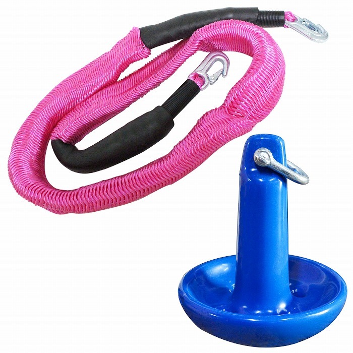 > 『伸縮ロープ/アンカーセット』マッシュルームアンカー 10LBS 4.5kg 青 ブルー 6M フロート のびのび アンカー ロープ ピンク
