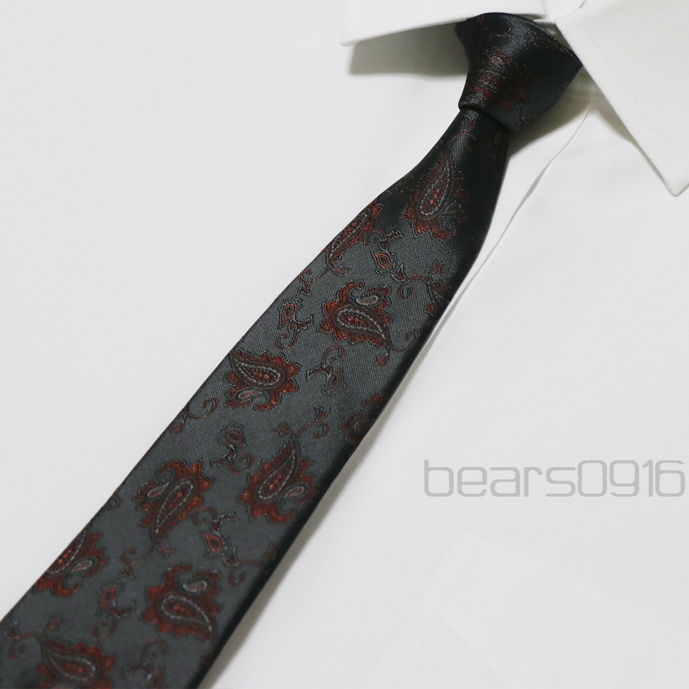 - 美品 80年代 アーカイブ YVES SAINT LAURENT イヴサンローラン ペイズリー柄プリント シルク ナロー ネクタイ 日本製 ダークグレー×濃赤