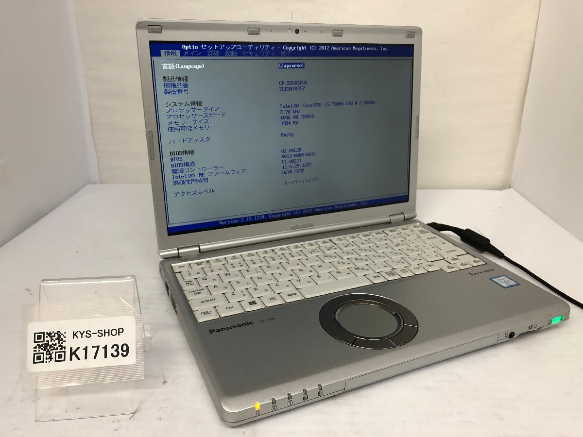 > ジャンク/ Panasonic CF-SZ6RDFVS Intel Core i5-7300U メモリ4.1GB ストレージ無し 【K17139】
