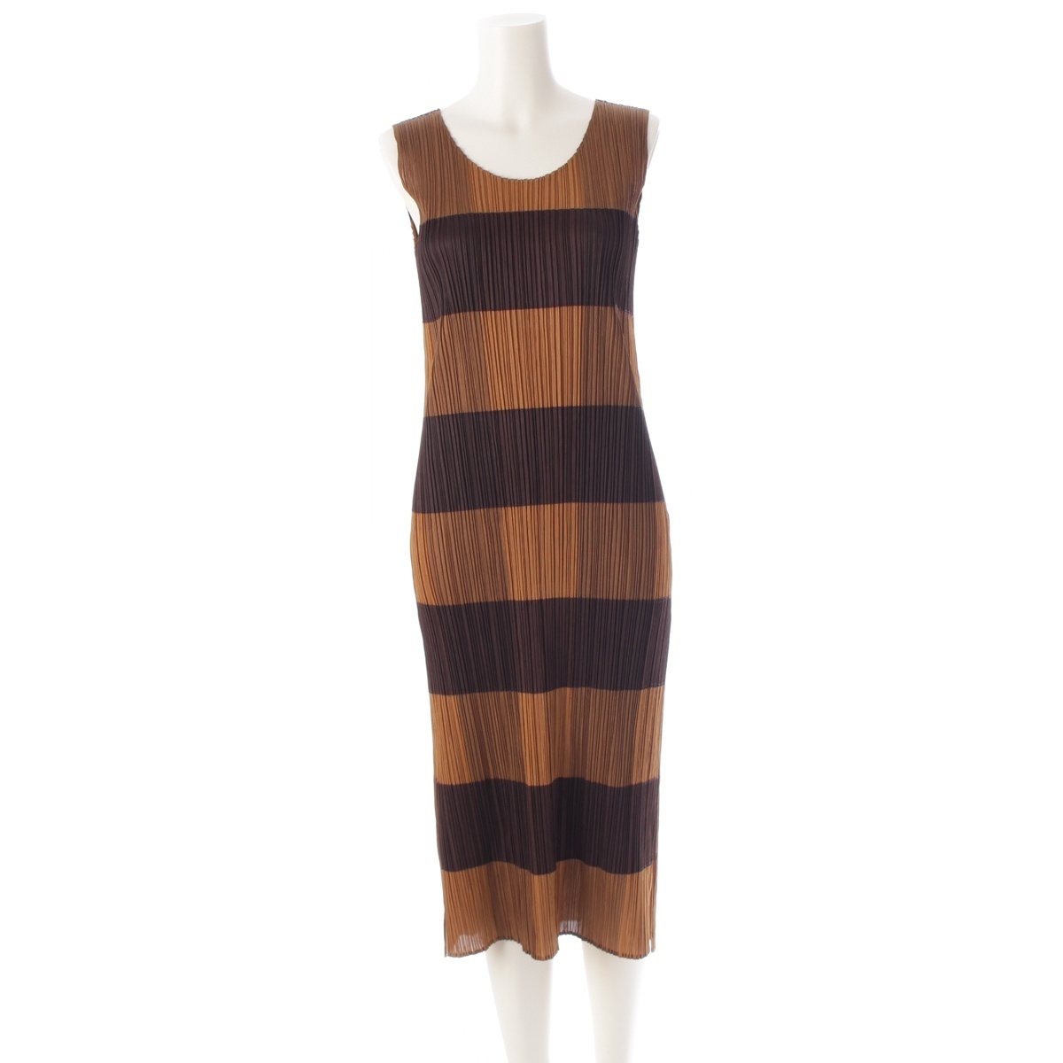 > プリーツプリーズ イッセイミヤケ チェック ノースリーブ ワンピース PP03-JH503 イエロー ブラウン 4【中古】