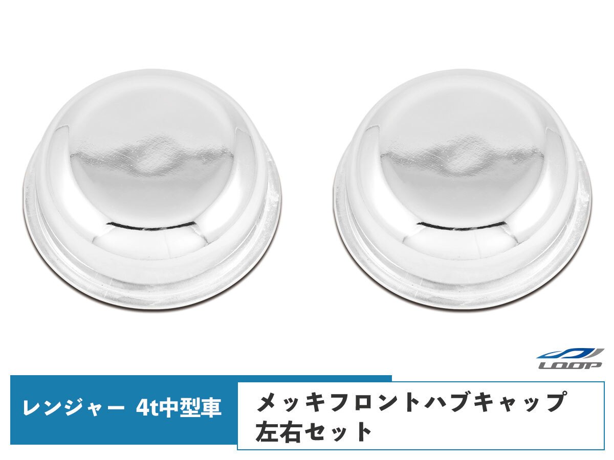 - 日野 レンジャー メッキ フロント ハブキャップ 左右セット 2個 4t 中型車 スチール製 はめこみ式