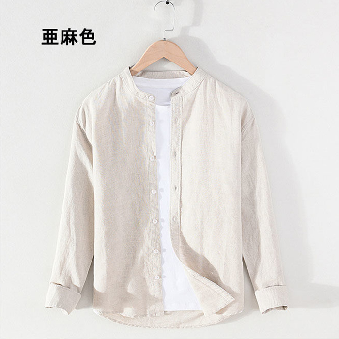 - メンズ 麻 長袖シャツ 夏用 カジュアル リネンシャツ Zty-5601 亜麻色 L