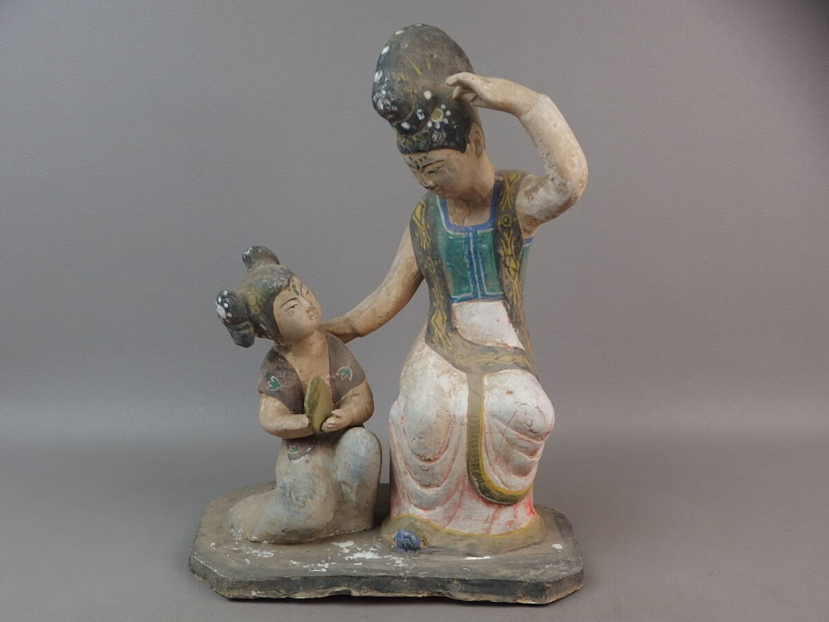 - 【骨董・発掘品】★中国古玩★★加彩夫人俑 婦人俑 gl003tb.7 母子像 女官 仕女俑 出土品