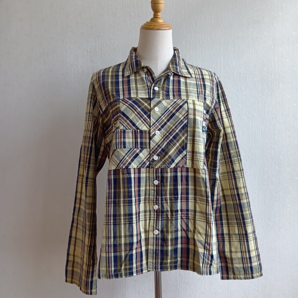 > HAI SPORTING GEAR イッセイミヤケ チェック柄シャツ パッチワーク イエロー