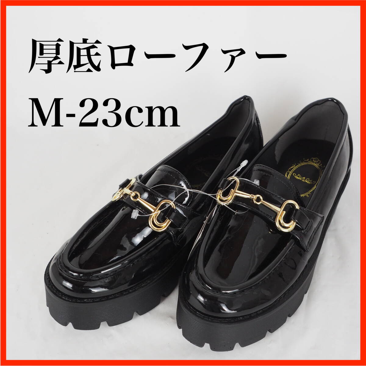 - OK4246*レディース厚底ローファー*M-23cm*エナメル黒