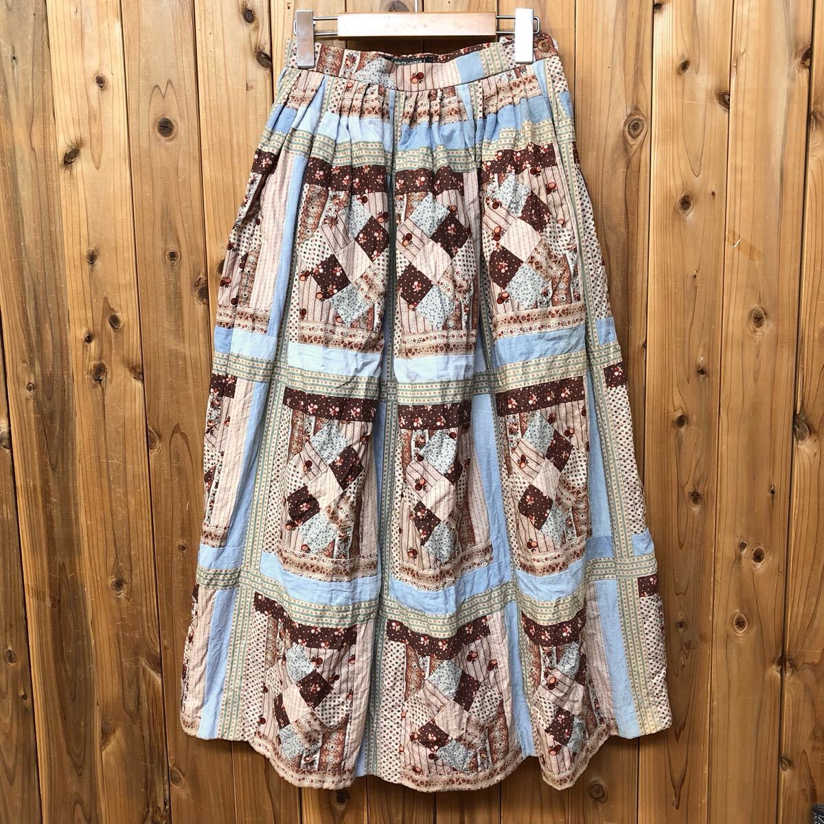 > RALPH LAUREN*ラルフローレン レディース7 ロングスカート フレアスカート ギャザー 総柄 花柄 パッチワーク カジュアル 古着