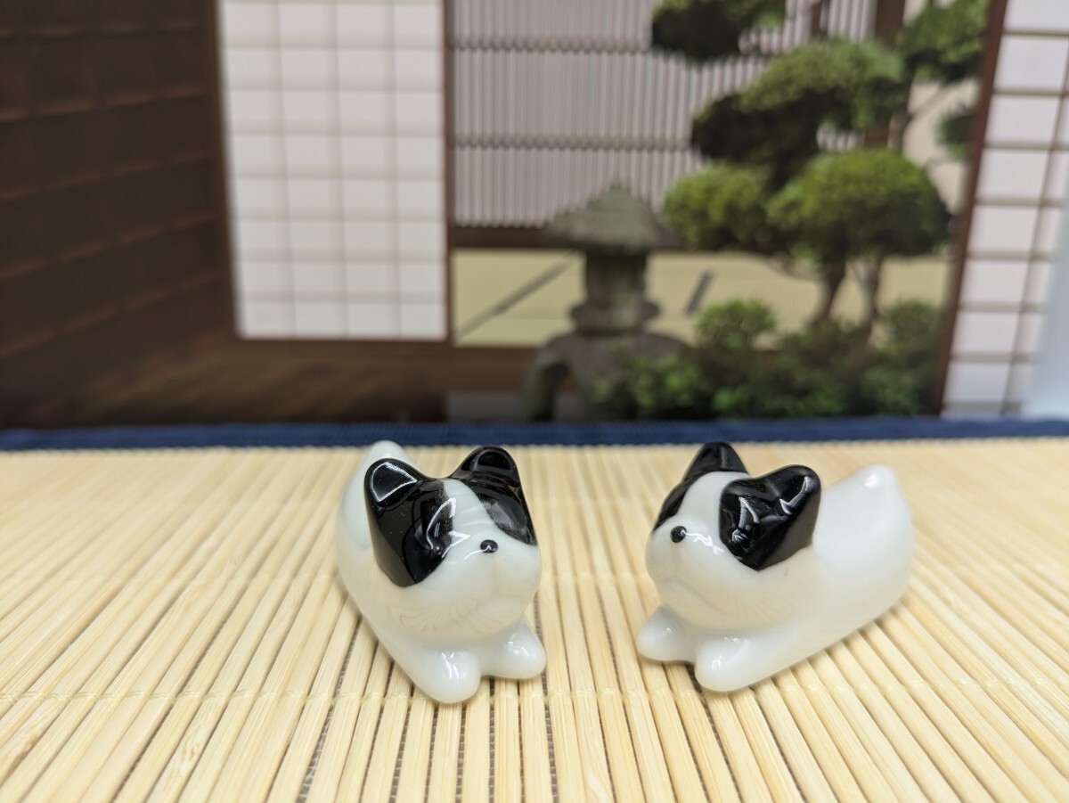 - 陶器製 箸置き 2個セット 犬 フレンチブルドッグ 置物 かわいい犬の箸置き