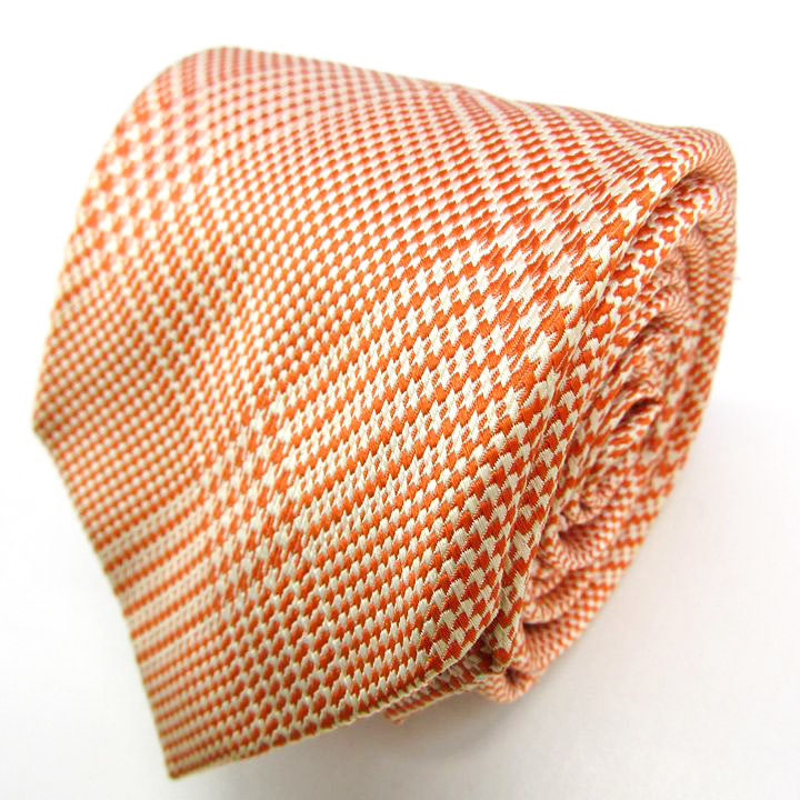 - スーツセレクト21 ブランド ネクタイ シルク グレンチェック 千鳥格子柄 ハンドメイド PO メンズ オレンジ SUIT SELECT21