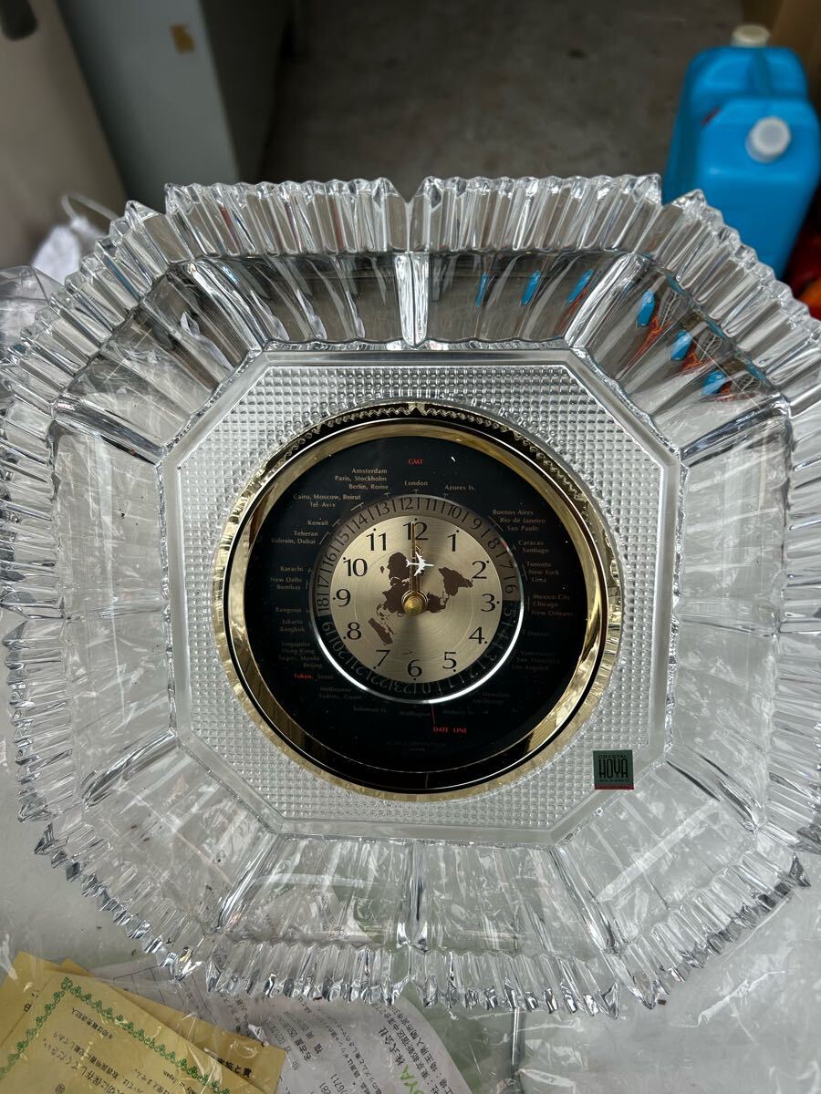 ガラス製灰皿 世界時計内蔵 記念品 未使用