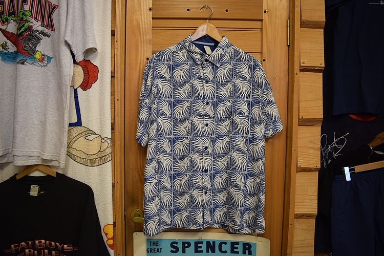 - グッドスタイル◎NATNASTナットナストコットン×シルク半袖総柄シャツLブルー×ホワイト青×白アメカジストリート x871