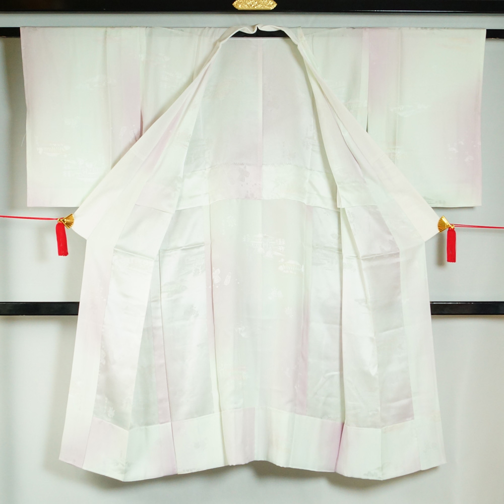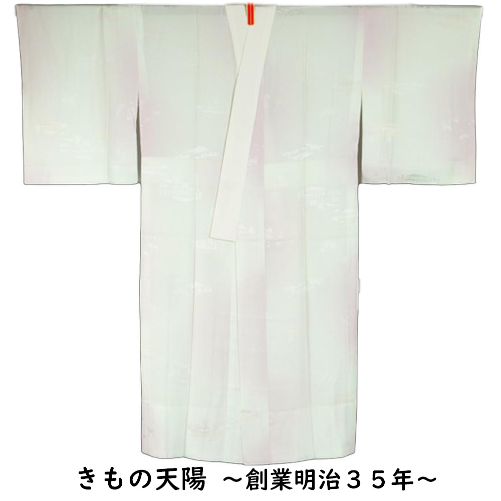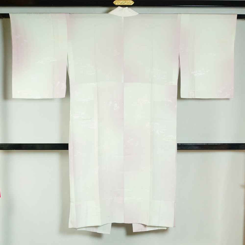 > 長襦袢 奈良の名所模様 白藤色系ぼかし 単衣仕立てで袖は無双(袷) Sサイズ 正絹 中古 襦袢 リサイクル着物 天陽