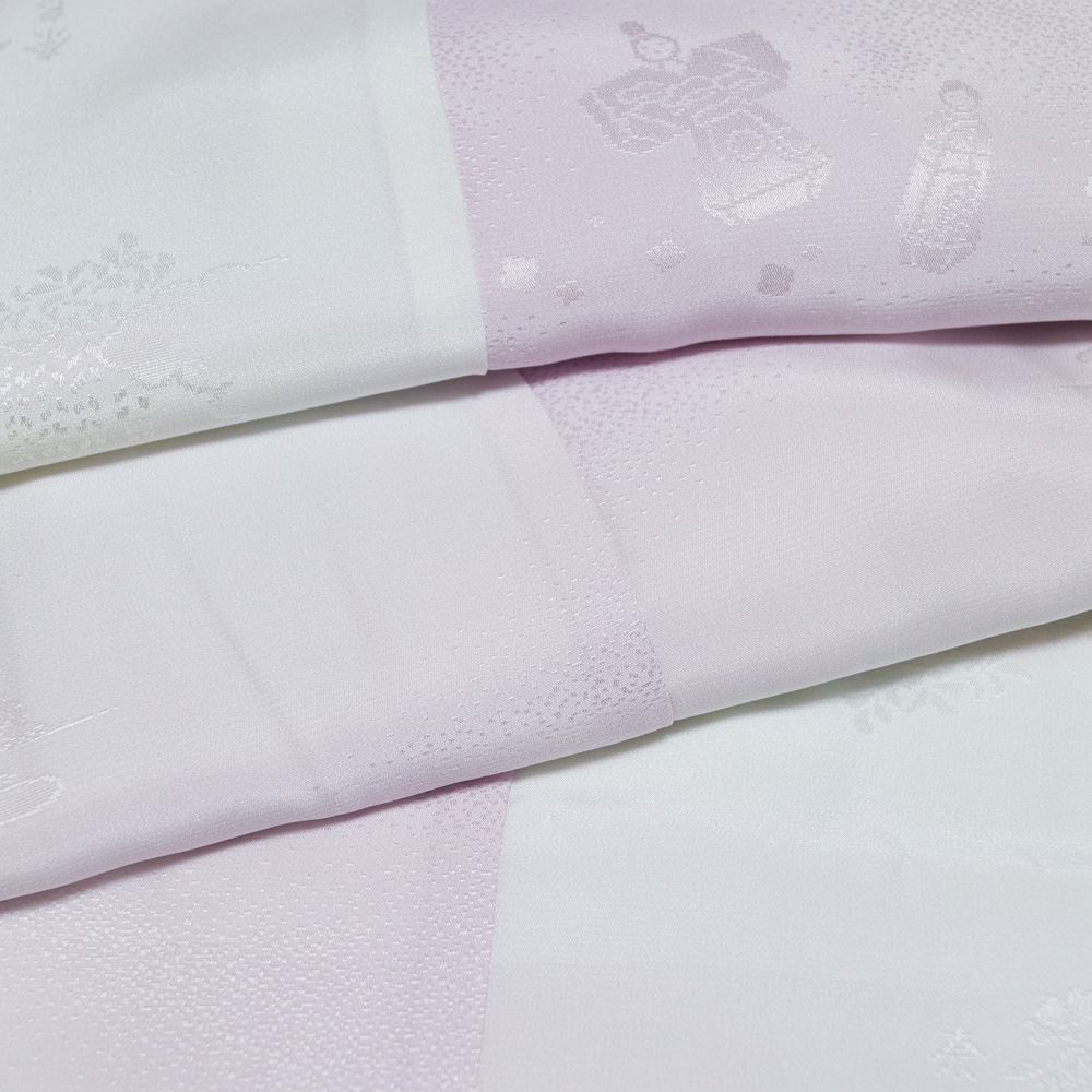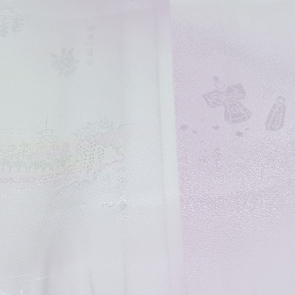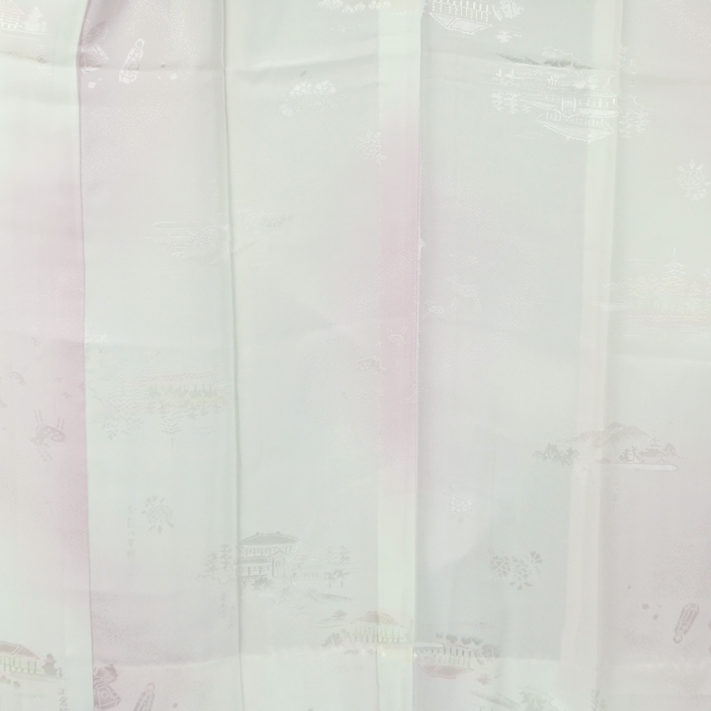 - 長襦袢 奈良の名所模様 白藤色系ぼかし 単衣仕立てで袖は無双(袷) Sサイズ 正絹 中古 襦袢 リサイクル着物 天陽