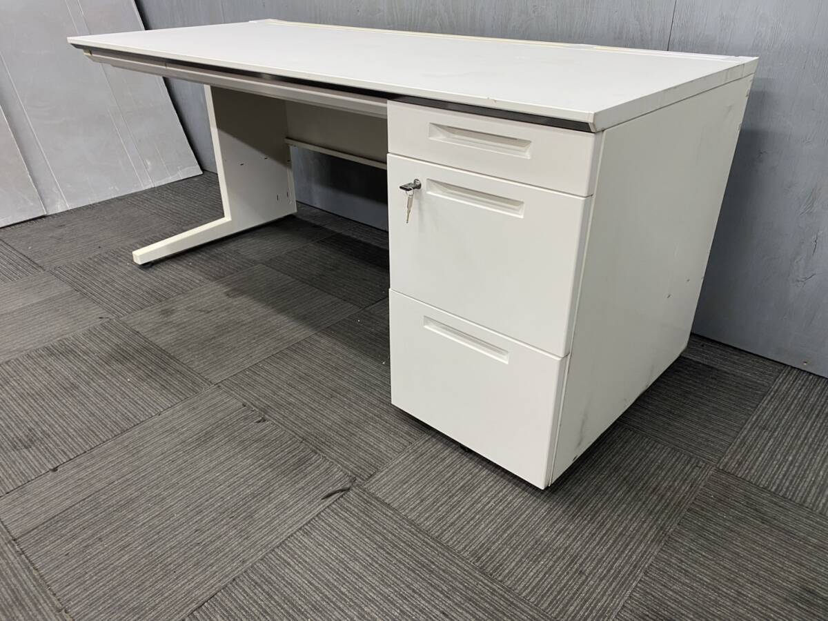 > ◆管2158◆自社便対応地域あり◆コクヨ製◆片袖机 幅1600mm 鍵付き◆天板 白 ホワイト