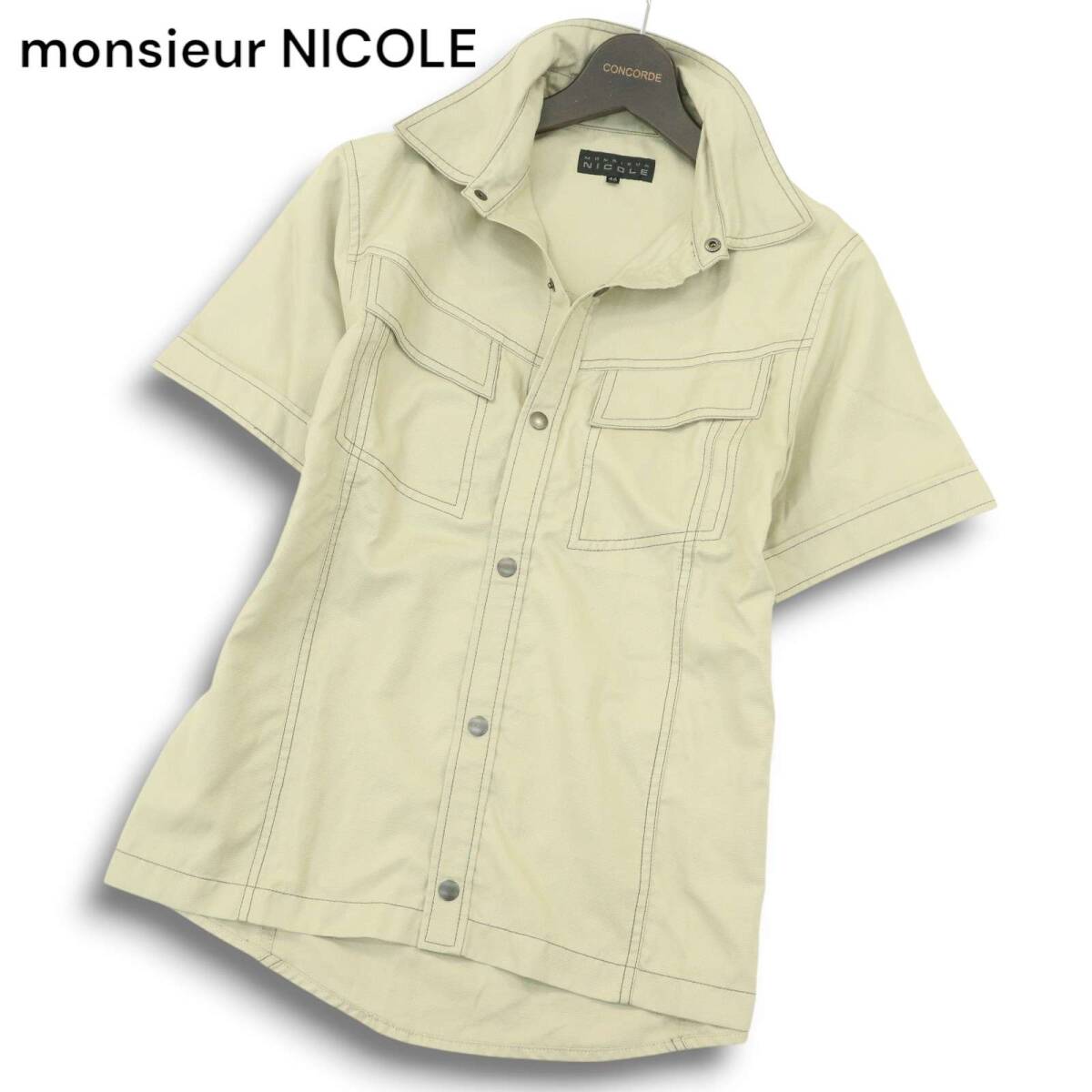 - monsieur NICOLE ムッシュ ニコル 春夏★ 半袖 スリム ワーク シャツ Sz.46 メンズ