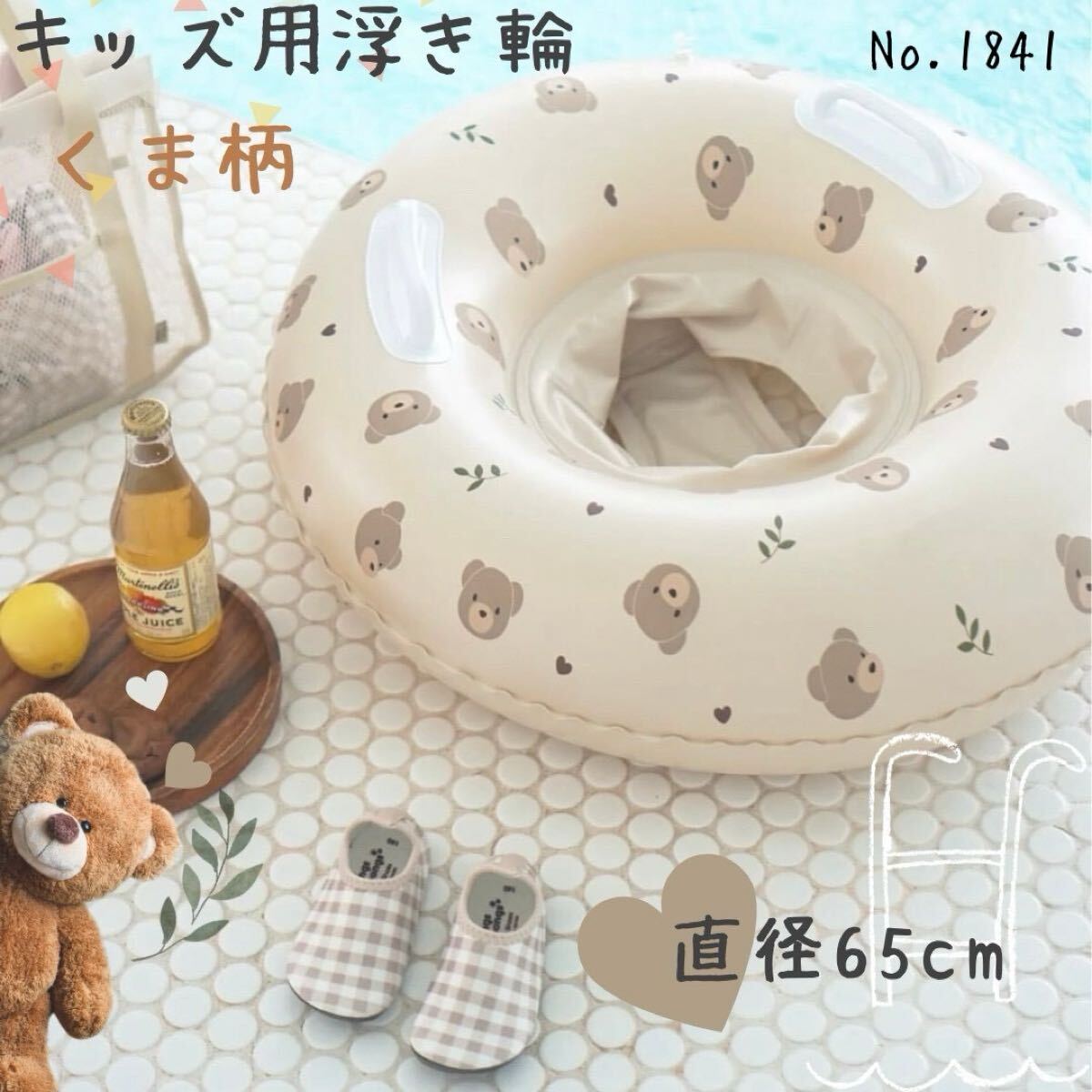 - キッズ用 浮き輪 くま柄 うきわ くすみ フロート 水遊び プール 子供 足入れ