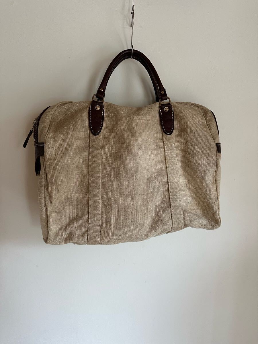 - 昭和初期リネンサイドバックトラッドFuji ジッパー1940年代日本製レザー 旅行バッグ レザー 旅行鞄 ボストンバッグ