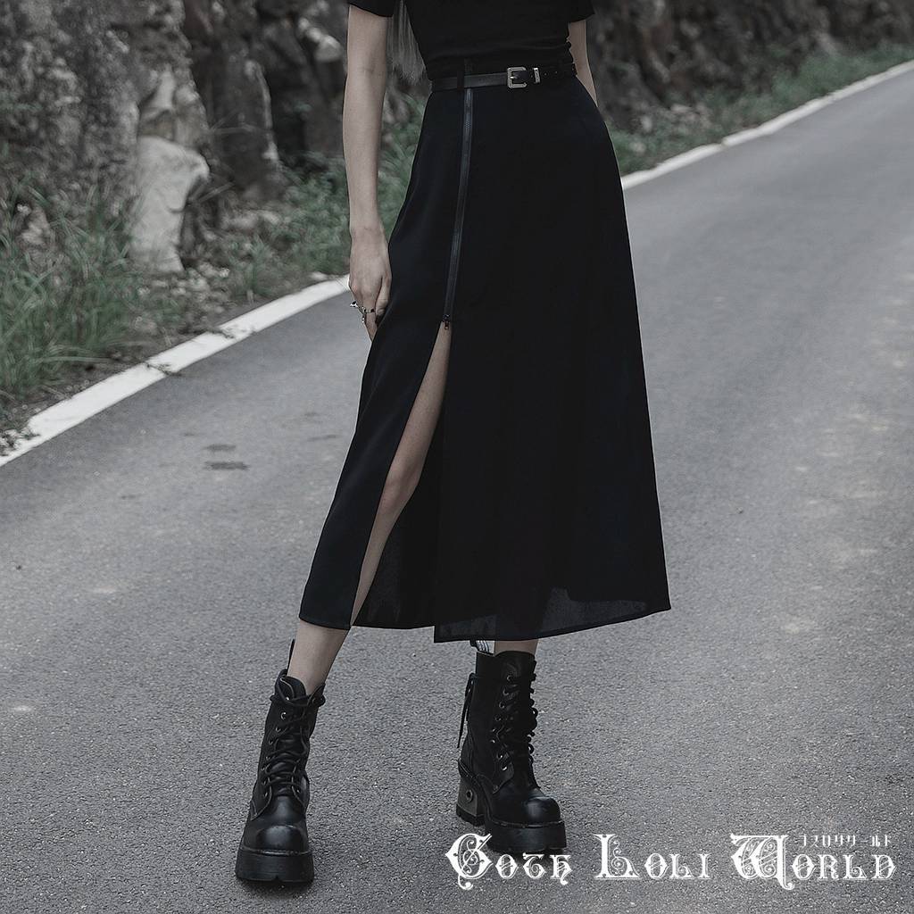 - 即納 OPQ-1218BQF-BK-L ゴシックファッション ベルト付スリット ロングスカート ゴシック ゴスロリ ビジュアル系 ヴィジュアル系 地雷系