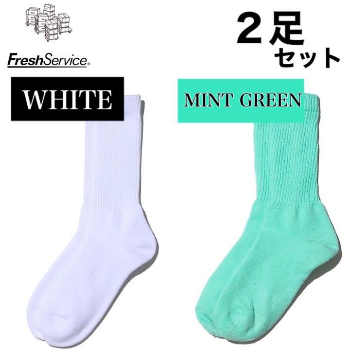 - フレッシュサービス FreshService靴下 ミントグリーン ホワイト 2足