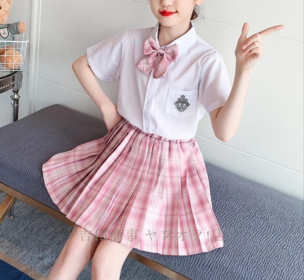 - A0752☆新品制服 2点セット セーラー服 女の子 子供服 半袖シャツ プリーツスカート チェック柄 キッズ JK制服 Aライン 学生服 ピンク
