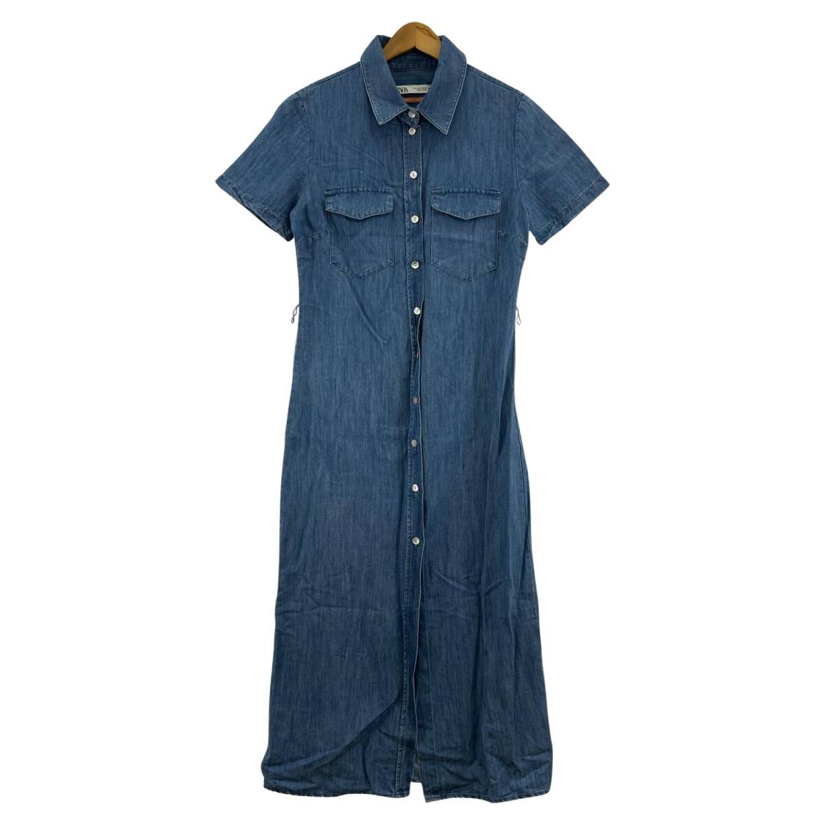 - ZARA ザラ ウエストリボン付き デニム ワンピース sizeEUR S/ブルー