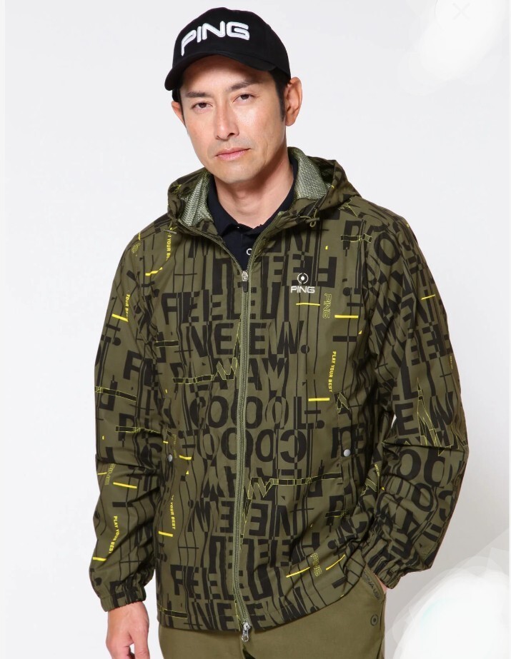 - 即決新品 PING GOLF デジタルノイズプリントリップ 撥水総裏メッシュ フーディージャケット カーキ Sサイズ Mサイズ相当ピンゴルフ