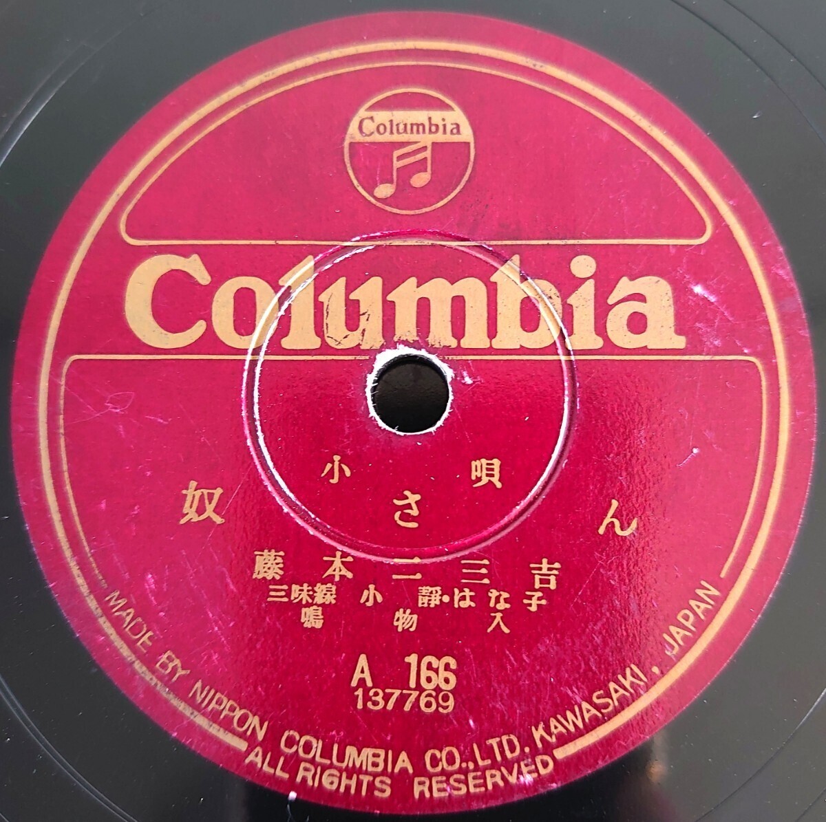 - 【SP盤レコード】Columbia A166 小唄/奴さん/かつぽれ/藤本二三吉