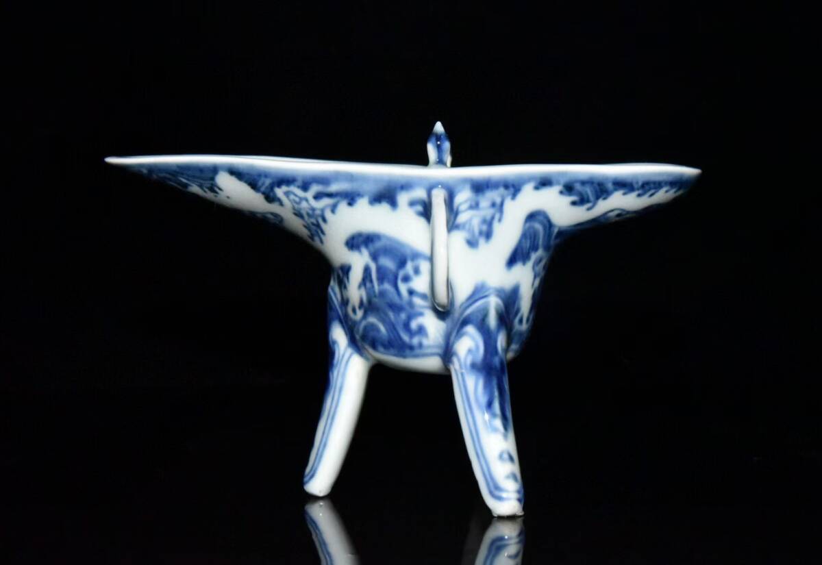 - 『館蔵珍品 明 宣德年製款 古陶瓷品 青花 海水龍紋 爵杯 陶藝』稀少珍蔵品 古賞物 貴重物品 収蔵品 中国古美術 時代物 古董品