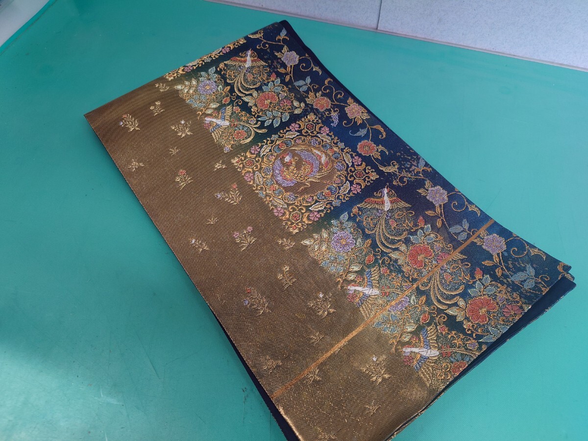 > ● 81 レトロ 高級 袋帯【鳳凰に花散し文】雅 煌 金彩 緑彩 花鳥 鳳凰 カラフル 刺繍 唐織 模様 文様 六通 帯 中古 ③