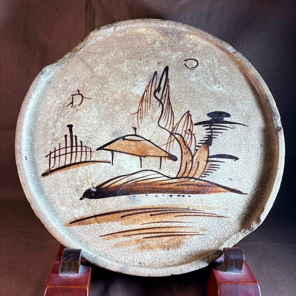 - 江戸時代 古瀬戸 絵瀬戸 行灯皿 時代物 絵皿