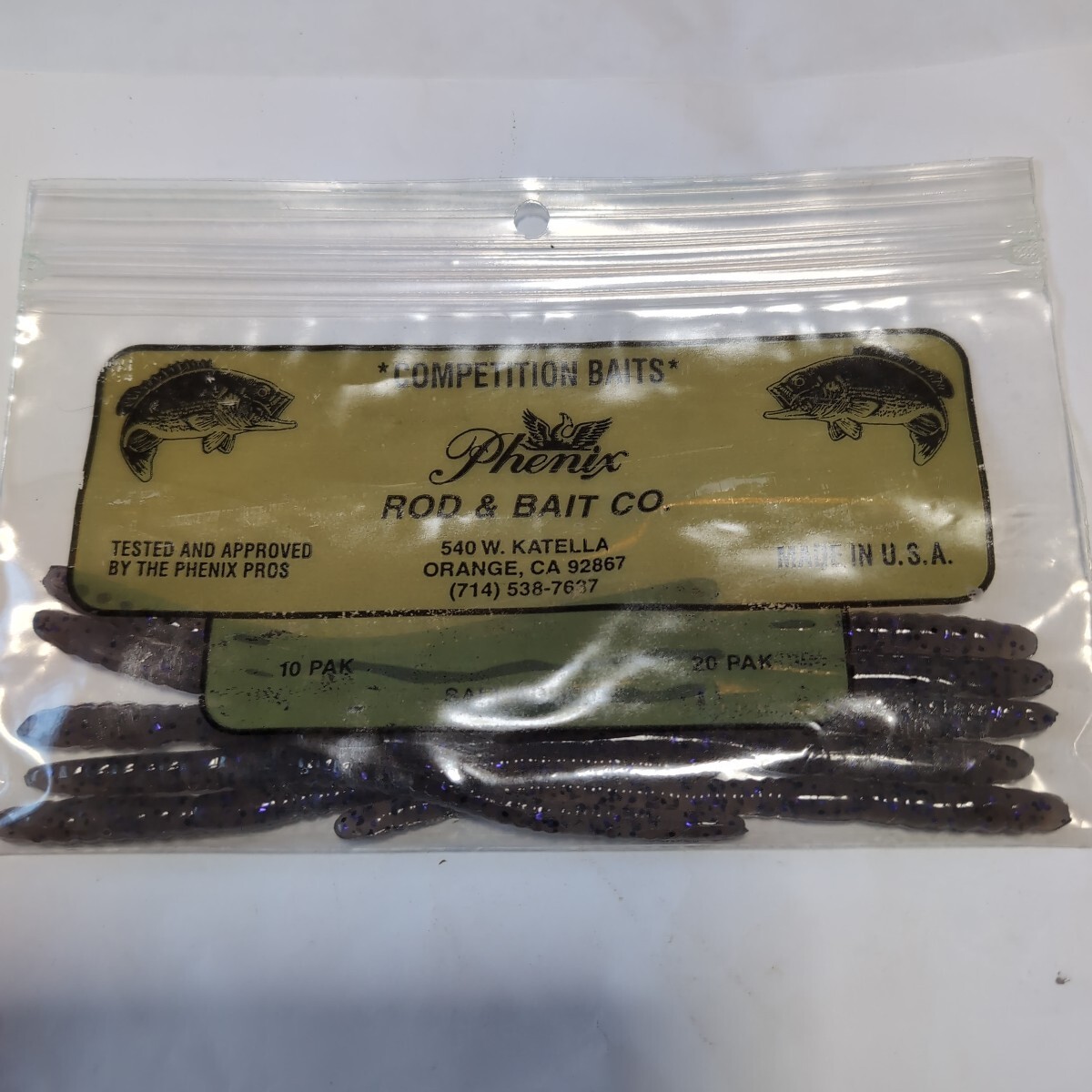 - ●未使用品●フェニックス●ストレートワーム●4インチ、10本入、スモークパープルブラックラメ●4