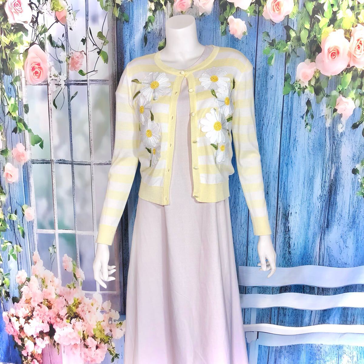 - tocco closet ライトイエローホワイト花柄サマーカーディガン M-L