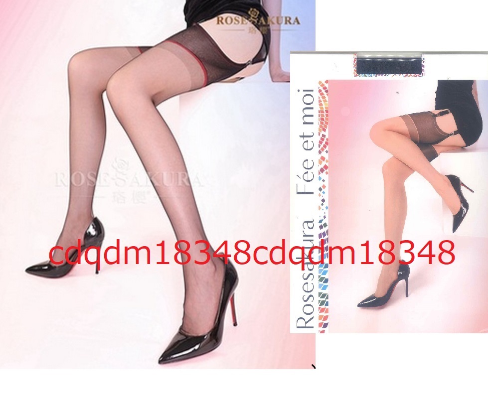- 黒 Rosesakura/品番8340/5デニール光沢/100%ナイロン/シームレスガーターストッキング/ 足型あり