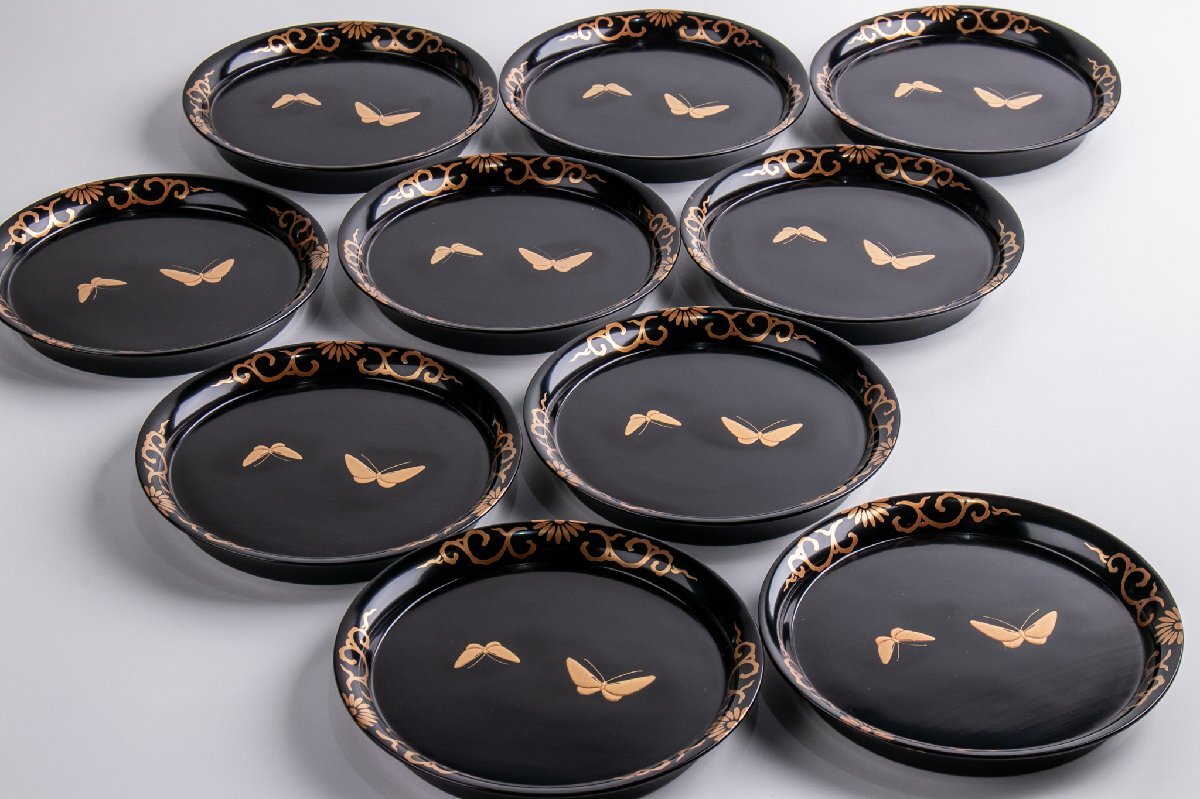 - 【うつわ】 時代物 輪島塗 蝶蒔絵木皿 菓子皿 10客 E1949A バラ売り可能です 古美術 骨董 古玩 唐物 茶道具 懐石 日本料理